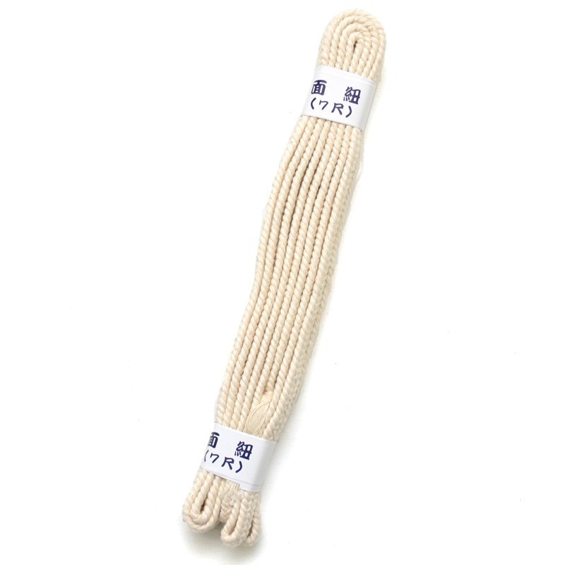 White cotton cords to hold the helmet (Men) on the head. The Men himo fits easily on the helmet and attaches to the Mengane (the helmet grid). The Himo standard length is 7 尺 (shaku) or 212.2cm.