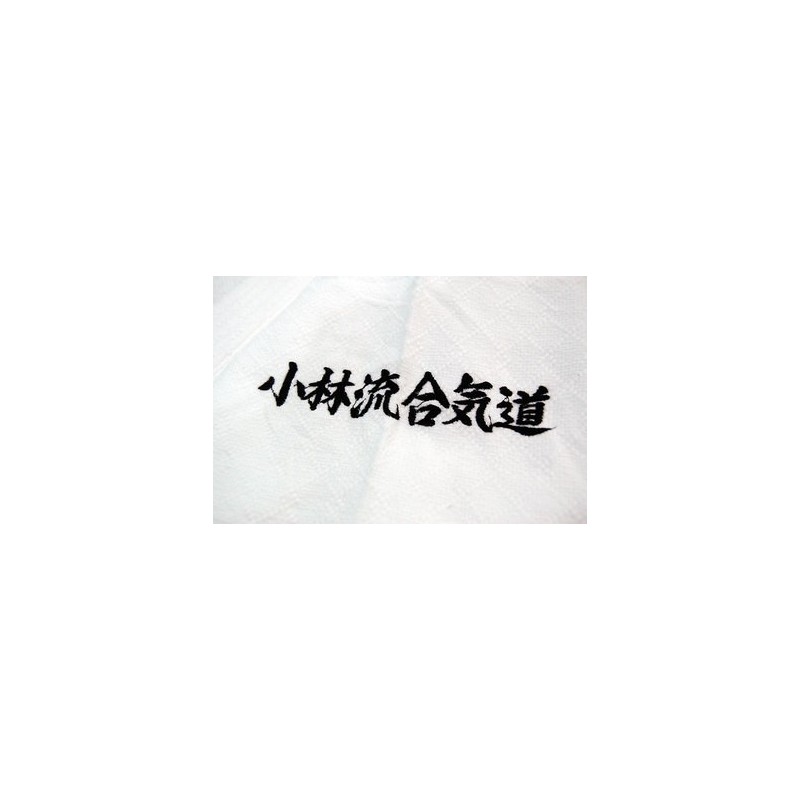 This dogi is only sold for the Aikido and Aikishintaiso Kobayashi group, it is embroidered "Kobayashi Ryu Aikido" 小林流合気道 in black on the left shoulder.