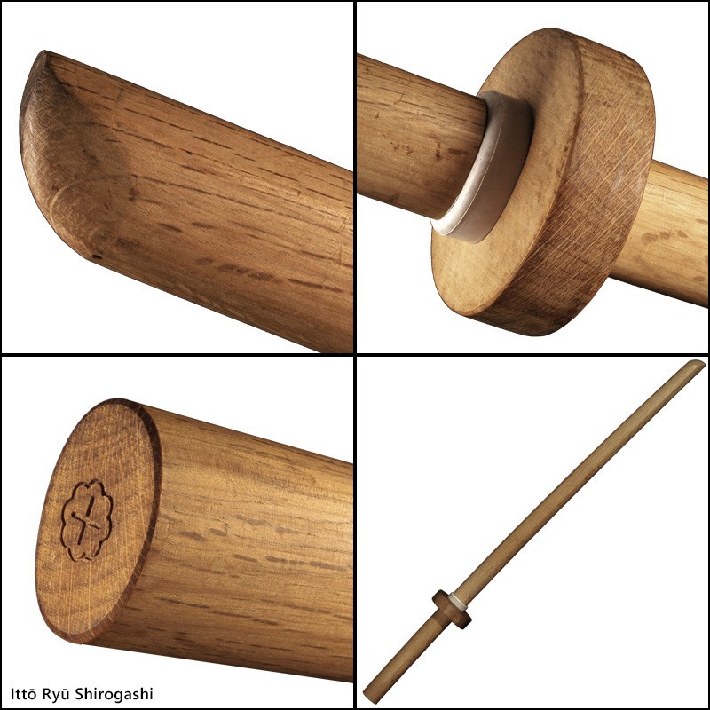 The Ittō-ryū bokuto, intended to take the opponent’s line in one shot, is thick enough to withstand the onslaught and has a thick, almost straight blade.