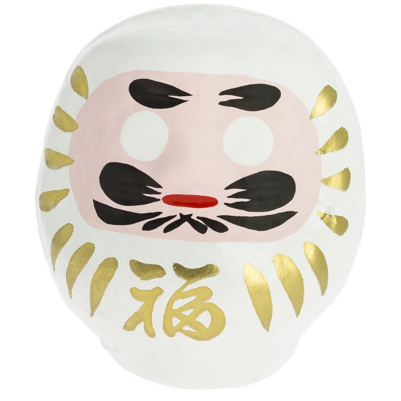 The Daruma (達 磨), handmade from papier mâché, is a lucky Japanese amulet, also called a wishing figurine. This is a representation of the monk Bodhidharma, the founder of Zen Buddhism. According to legend, the latter reached enlightenment after meditating alone in a cave for 9 years, but he lost his arms and legs which had atrophied. Hence its particular and icônic shape. Decide on a goal and draw a first eye on the Daruma, reciting it mentally. We highlight the Daruma at home as a way to remember the goal to be achieved, it is a wish calling for action, and not an expectation of divine realization. When the goal is reached, you draw the second eye as a sign of gratitude. We sometimes note how we have achieved the desired goal: it is a checklist of our learning. If you don’t get what you want, it’s traditional to burn your Daruma at the end of the year in a temple, it’s the Goma ritual. It simply means that you are looking for other ways to achieve your goal. Japanese Kanji "福" (fuku) written on its belly means happiness or blessing. The Daruma White is used for goals related to love and success. With the kanji of luck painted on the chin, it is also the daruma that Japanese students choose when they prepare their exams.