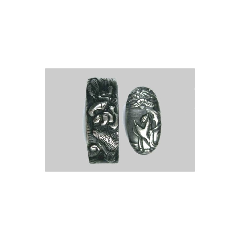 This Fuchi/Kashira is patterned with a praying monk.