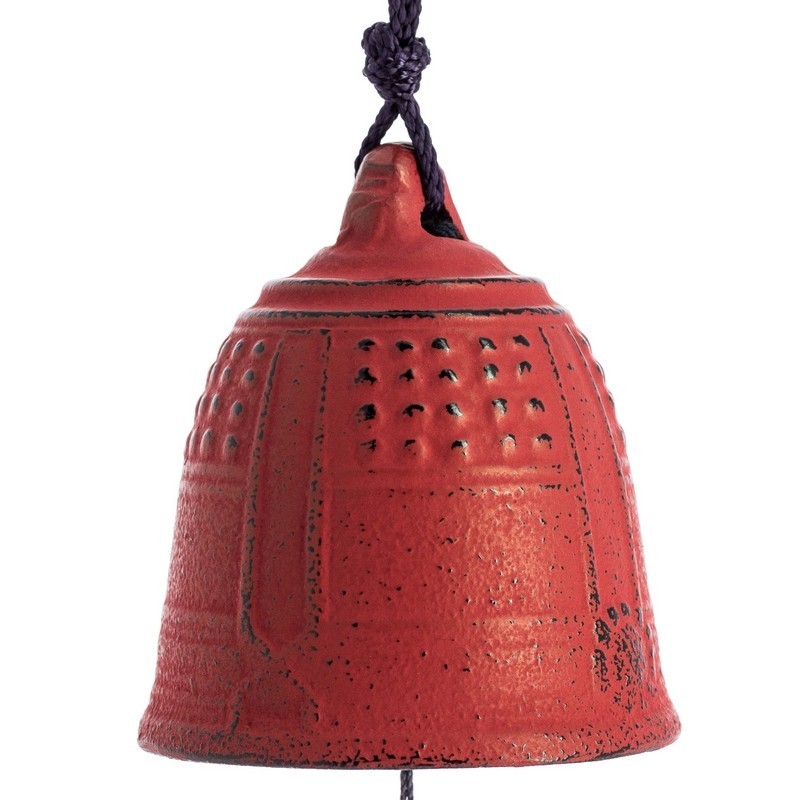 This bell, Fūrin (風 鈴 - litt. wind bell) is a cast-iron wind chime made by the Iwachu company in Morioka, Japan. It is traditionally placed on the ledges of temples or houses, and they tinkle with the wind that activates the carillon by the hanging piece of paper, the tansatsu, on which is often inscribed a Haiku or a wish. In the suffocating heat of summer, the sound of these little bells is refreshing for the Japanese. You can hang your bell inside the house next to a door or window or outside in the garden or on the terrace. Red is the colour of the light element and is associated with intensity, strength and luck.