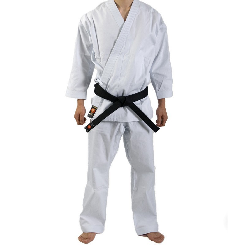 It is made of a medium thickness fabric, usable for all types of practice, be it kumite or kata. Its canvas is a 100% Cotton Canvas #11 bleached.