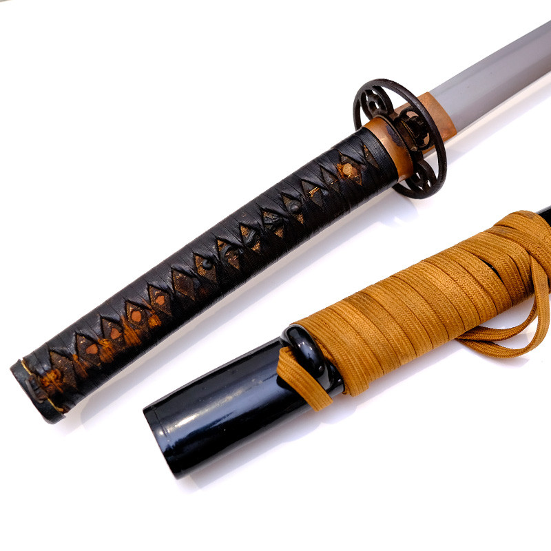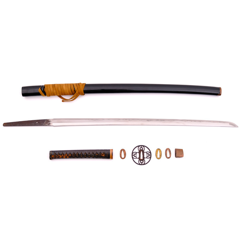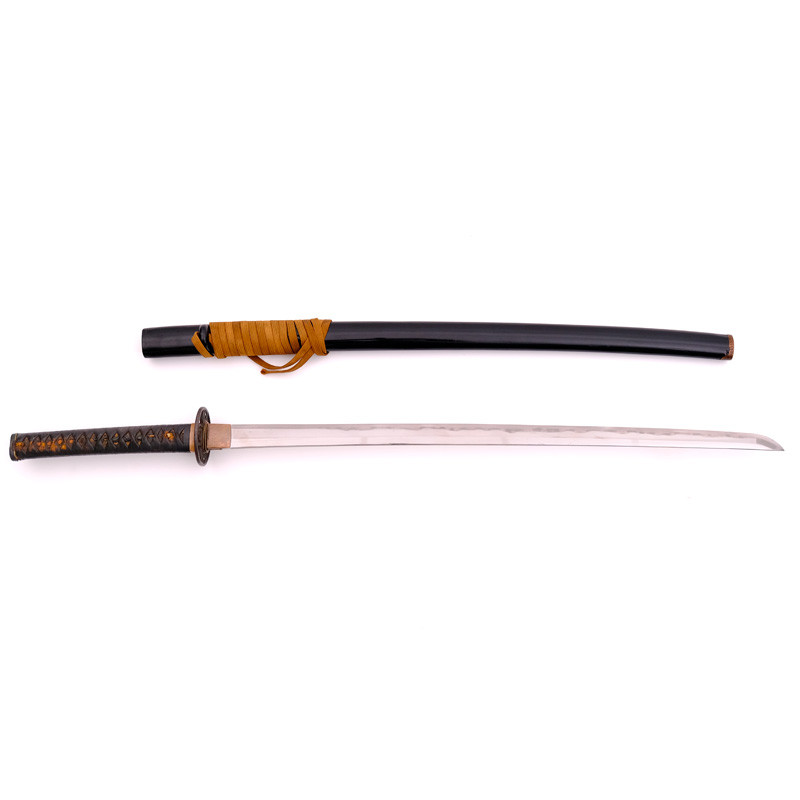 | Saya | Length 76 cm, Weight 0.312 kg. Presence of Kaeshi Zuno. Metallic reinforcement on the Kojiri. Sageo silk brown. | |