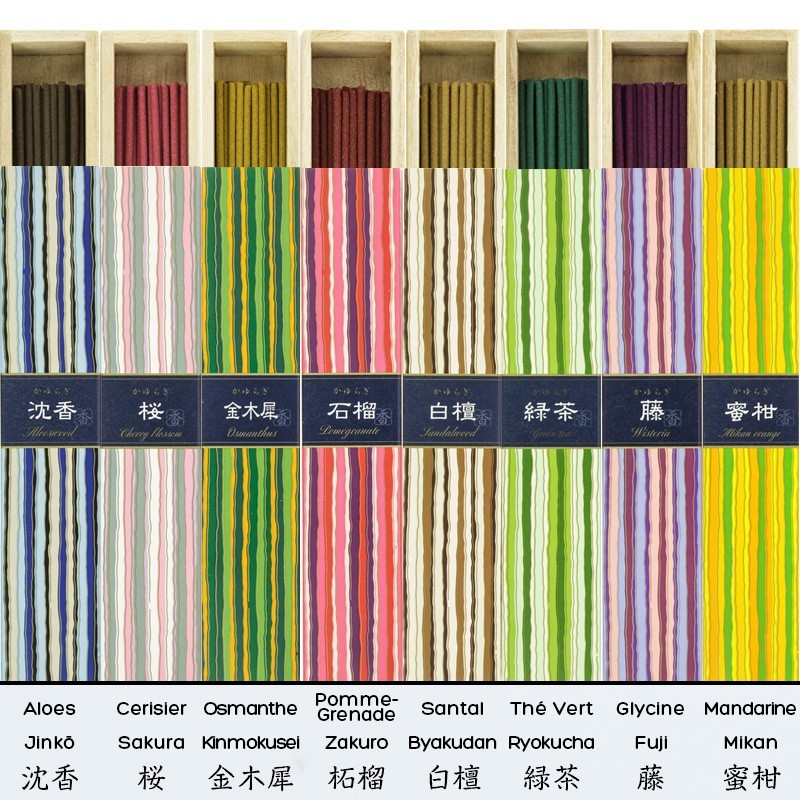 Presented in Paulownia wood box that preserves the incense from moisture, and accompanied by an incense holder.