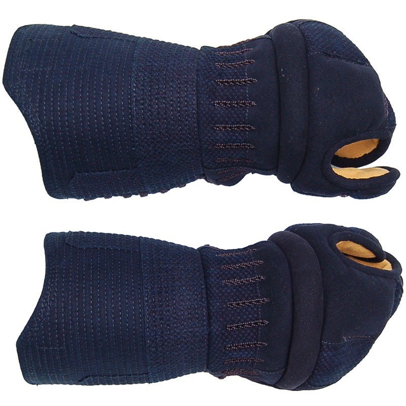 The protection parts of the forearms are made of 100% thick cotton indigo blue fabric stitched in 5mm. The junction (Tsutsu) between the Kotebuton and Kobushi is soft and offers very good wrist handling and mobility.
