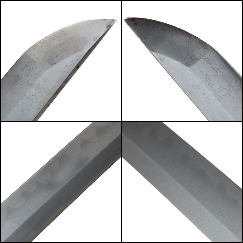 | Type Kissaki | Chu Kissaki (Medium length). Fukura very lightly serrated and some visible surface oxydation | |