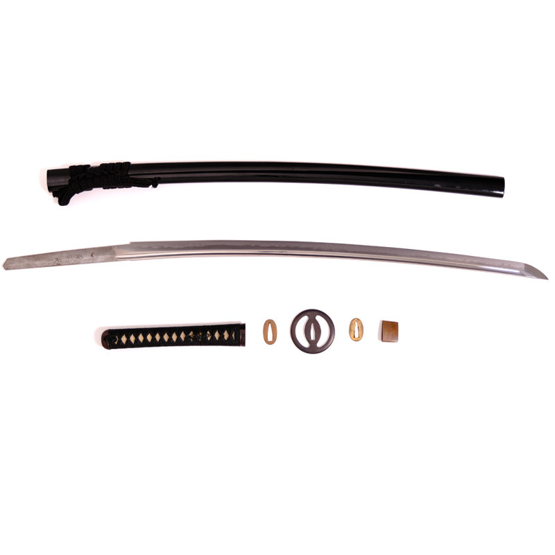 | Saya | Length: 80.8cm, Weight: 257 g, Saya Kuroro (glossy black lacquer), with black Sageo cotton. | |
