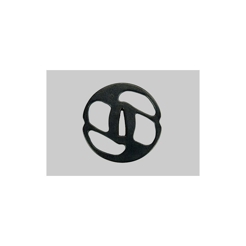 Maru Gata Tsuba (round). Kagecho 影蝶 with Butterfly Silhouette pattern, in smoked Copper.