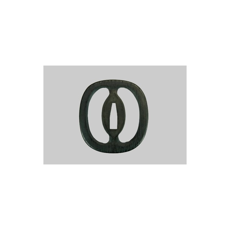 Naga Maru Gara Tsuba (oval). Higo 肥後 Design, from the former Southern Province of Japan. Sea cucumber shaped openings.