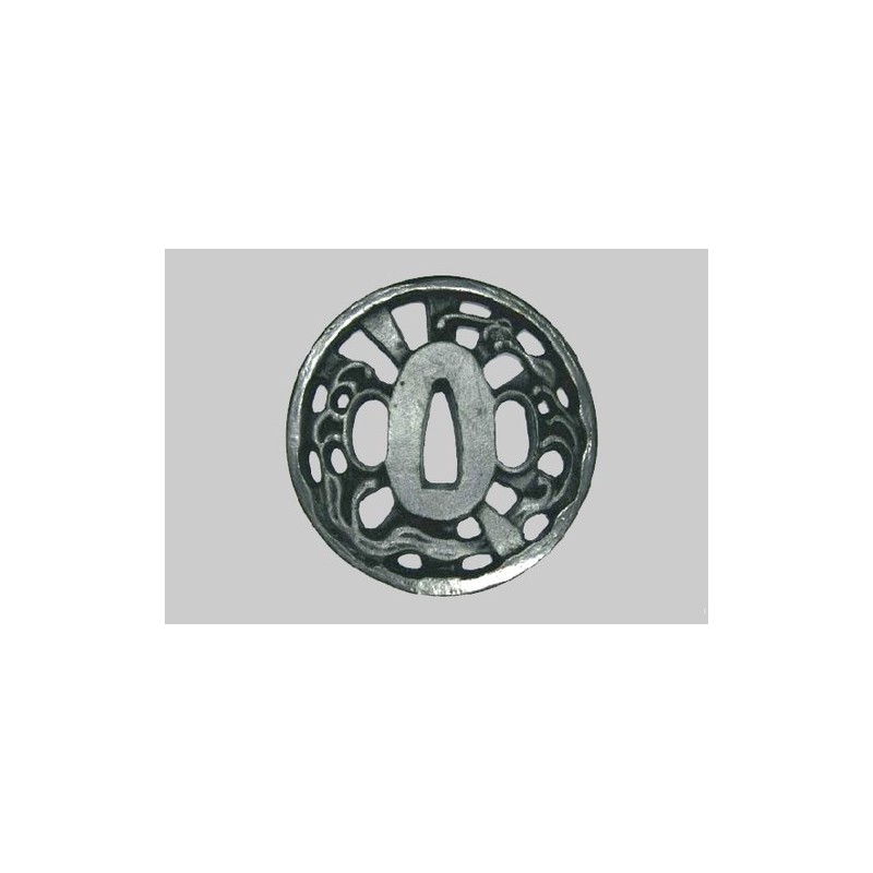 This tsuba is of the Sukashi type, with opening work. It is the replica of a historical Tsuba that belonged to the "Yagyu" family of swordsmen. The Tsuba of this school of swordsmanship were ordered and made for a functional purpose, adapted to their sword handling techniques.