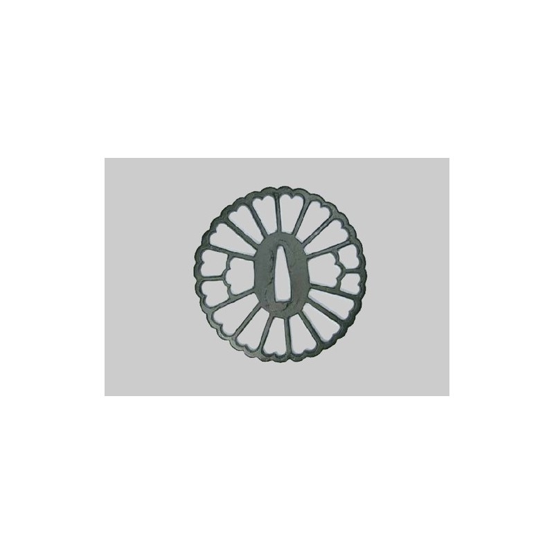 This Tsuba with chrysanthemum flower pattern is one of the most popular among the Japanese. As its petals form radially, it is linked to the sun.