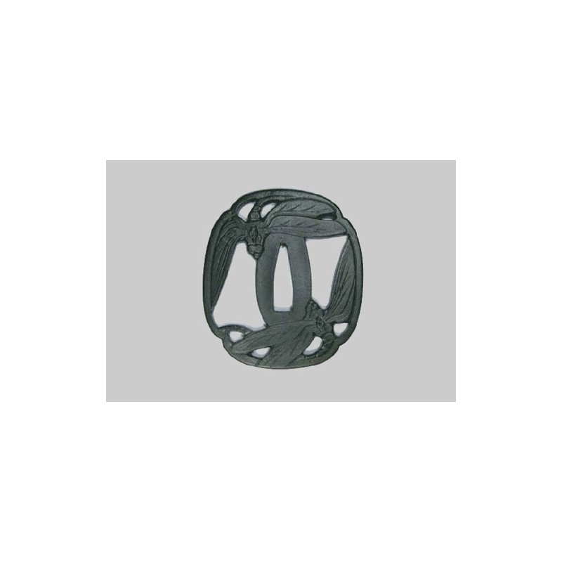 This Tsuba with 2 opposite dragonflies (Mukai Katsumushi - 向い勝虫). The dragonfly is, with the Sakura, one of the recurring emblems of the Samurai.