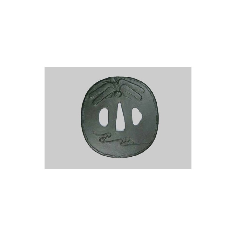 This Tsuba represents a Dragonfly (Katsumushi - 勝虫) above the water flow (Ryusui - 流水).