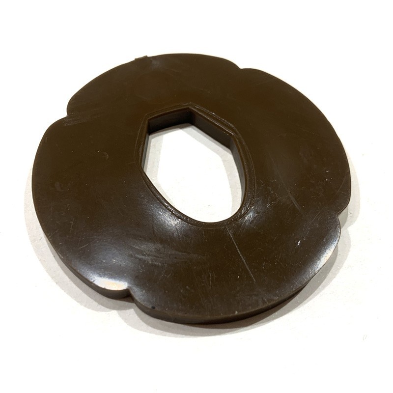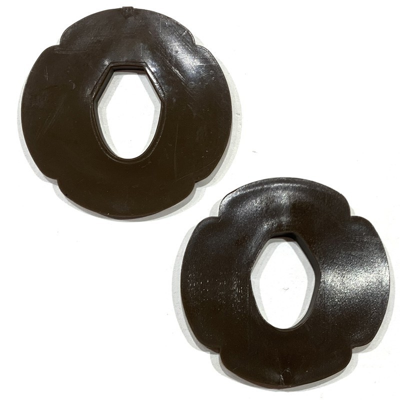 Ces tsuba marron en pvc rigide sont de forme Mokko Gata (木瓜形), qui est une forme quadrilobée classique et répandue pour les Tsuba.