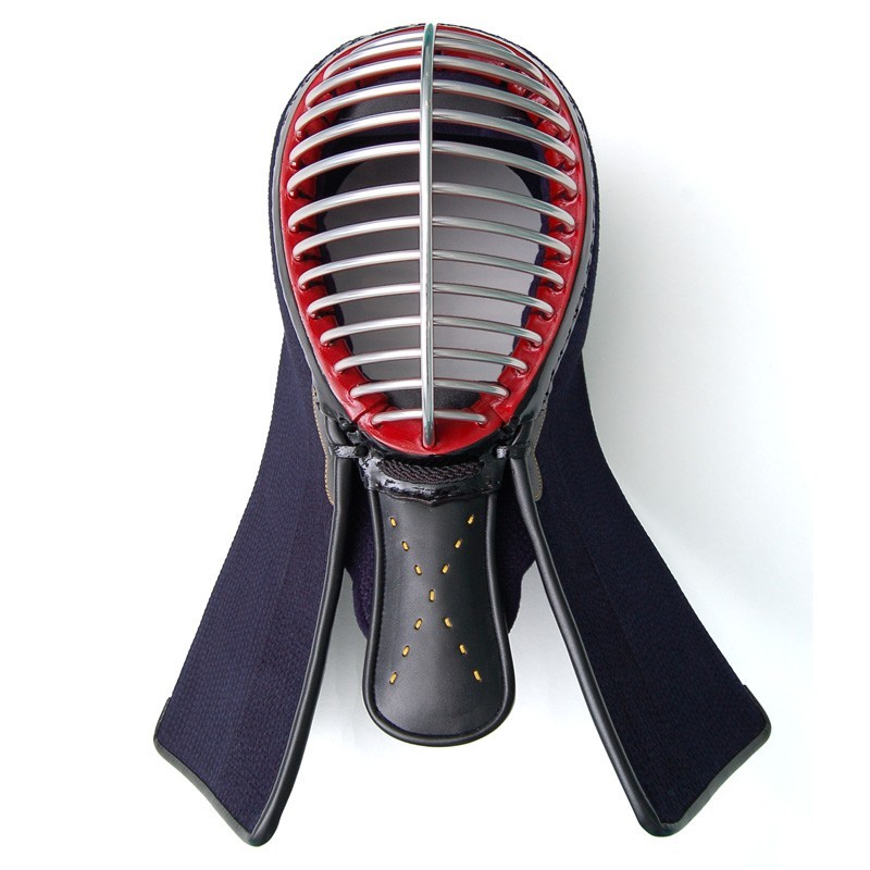 Il est composé d'une grille (Mengane) de 14 lignes de renfort horizontal en duraluminium. Le contour du Mengane et les passages des Men Himo sont en cuir synthétique. La bavette de protection de gorge (Tsukidare) est rigide, épaisse, et recouverte de cuir synthétique noir surpiqué. L'ensemble du Menbuton est en tissu 100% coton bleu indigo surpiqué en 6mm.
