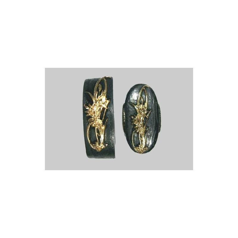 Une fleur de Narcisse (Suisen - 水仙) est représentée sur cette paire de Fuchi/Kashira.