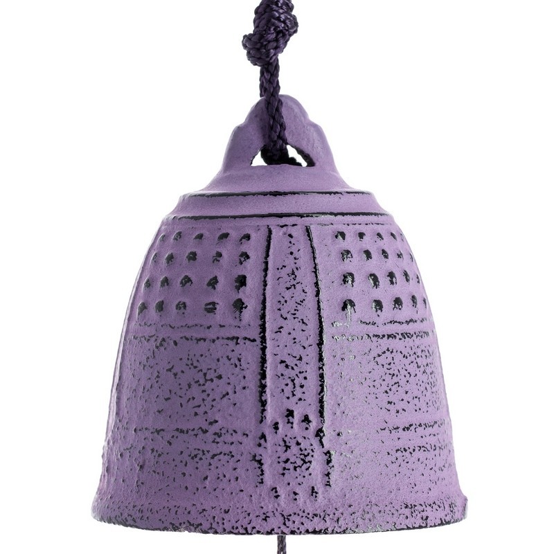 Cette cloche, Fūrin (風鈴 - litt. cloche à vent) est un carillon à vent en fonte est fabriquée de façon artisanale par l'entreprise Iwachu à Morioka au Japon. Elle est traditionnellement placée sur les rebords des toits des temples ou des maisons, et elles tintent avec le vent qui active le carillon par le morceau de papier suspendu, le tansatsu, sur lequel est souvent inscrit un Haiku ou un vœu. Dans la chaleur suffocante de l'été, le son de ces petites cloches est rafraîchissant pour les japonais. Vous pouvez pendre votre cloche à l'intérieur de la maison à côté d'une porte ou d'une fenêtre ou bien à l'extérieur dans le jardin ou sur la terrasse. La couleur lavande est une couleur féminine qui est associée à l'élégance, au raffinement et également à la sagesse.