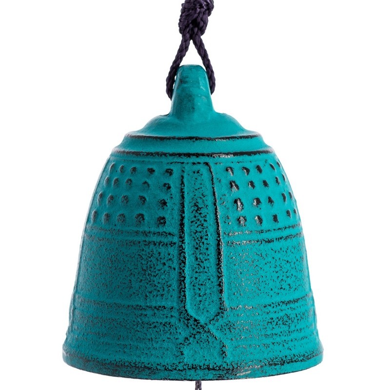 Cette cloche, Fūrin (風鈴 - litt. cloche à vent) est un carillon à vent en fonte est fabriquée de façon artisanale par l'entreprise Iwachu à Morioka au Japon. Elle est traditionnellement placée sur les rebords des toits des temples ou des maisons, et elles tintent avec le vent qui active le carillon par le morceau de papier suspendu, le tansatsu, sur lequel est souvent inscrit un Haiku ou un vœu. Dans la chaleur suffocante de l'été, le son de ces petites cloches est rafraîchissant pour les japonais. Vous pouvez pendre votre cloche à l'intérieur de la maison à côté d'une porte ou d'une fenêtre ou bien à l'extérieur dans le jardin ou sur la terrasse. La couleur turquoise, tout comme le bleu, est source de tranquilité et de plénitude.