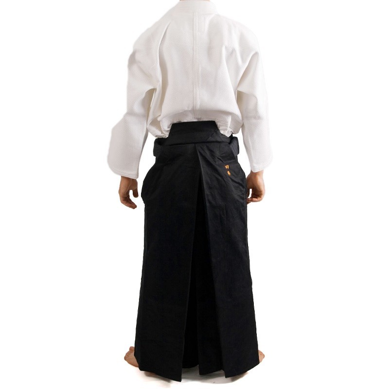 Le Hakama Coton Noir -木綿黒- est un must pour le pratiquant qui souhaite avec la qualité et la classe de son hakama en coton, mais qui souhaite avoir une pratique intensive, sans décoloration de son vêtement.