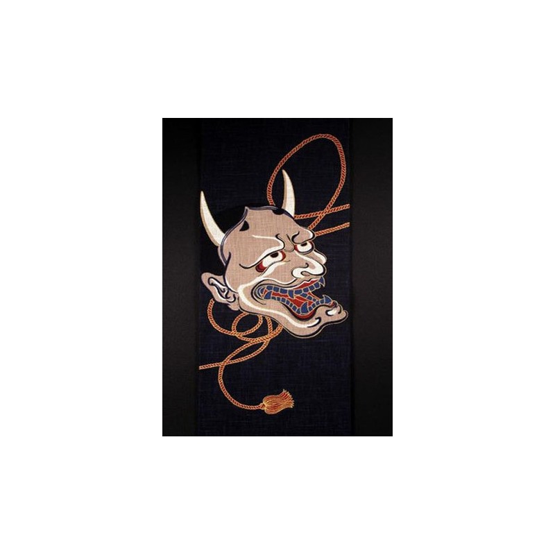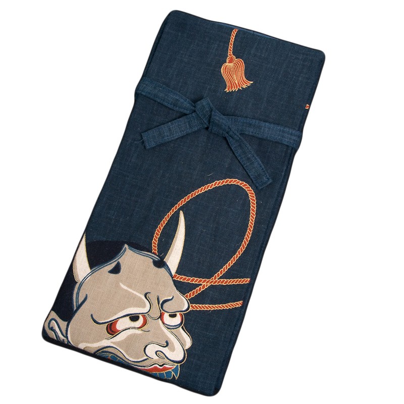 Le tissu en coton fin est doublé à l'intérieur, ce qui la rend résistante. Il y a également une doublure extérieure sur la partie basse. Le motif Hannya est imprimé à la manière des estampes, couleurs par couches d'impression. C'est une housse de haute qualité, très élégante, aux représentations et symboliques variées.