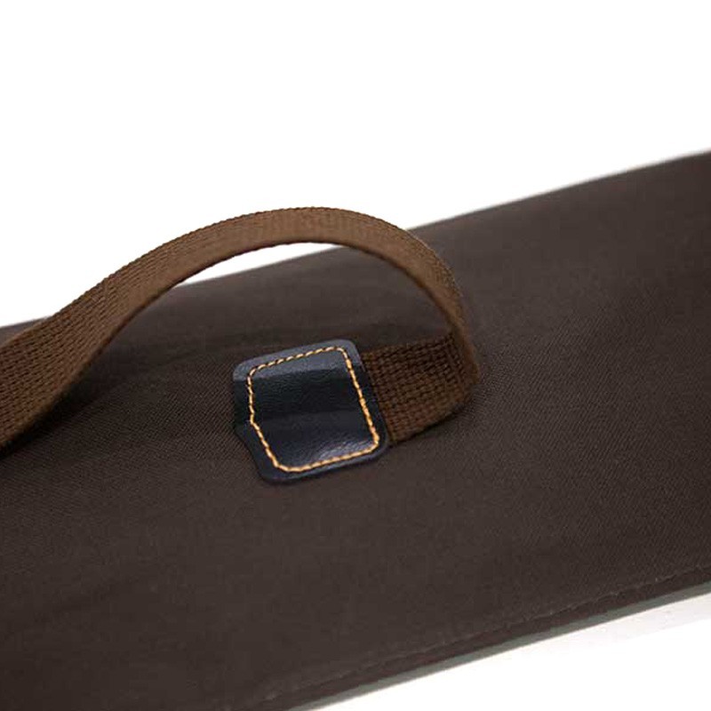 La partie haute, une fois rabattue, sert de poche pour mettre les accessoires type Tsuba et Tsuba dome.