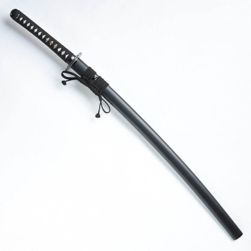 Saya : Laque Hon Kuro Ishime 本黒石目 (laque mate de couleur noire), en bois de Magnolia, et Shitodome argentés.