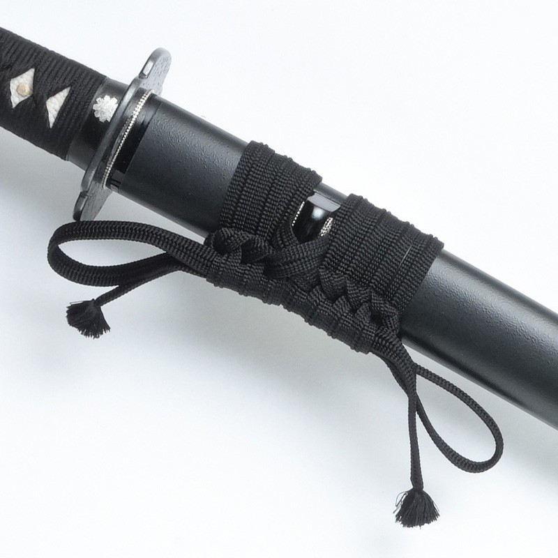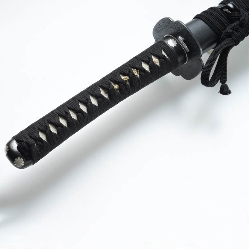 Tsukaito : Tressage de la poignée Hineri Maki en coton de couleur noire.