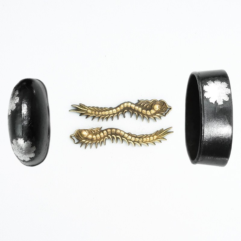 Menuki : Mukade (Scolopendre - 百足) dorés, symboles de force, et messager de Bishamonten.
