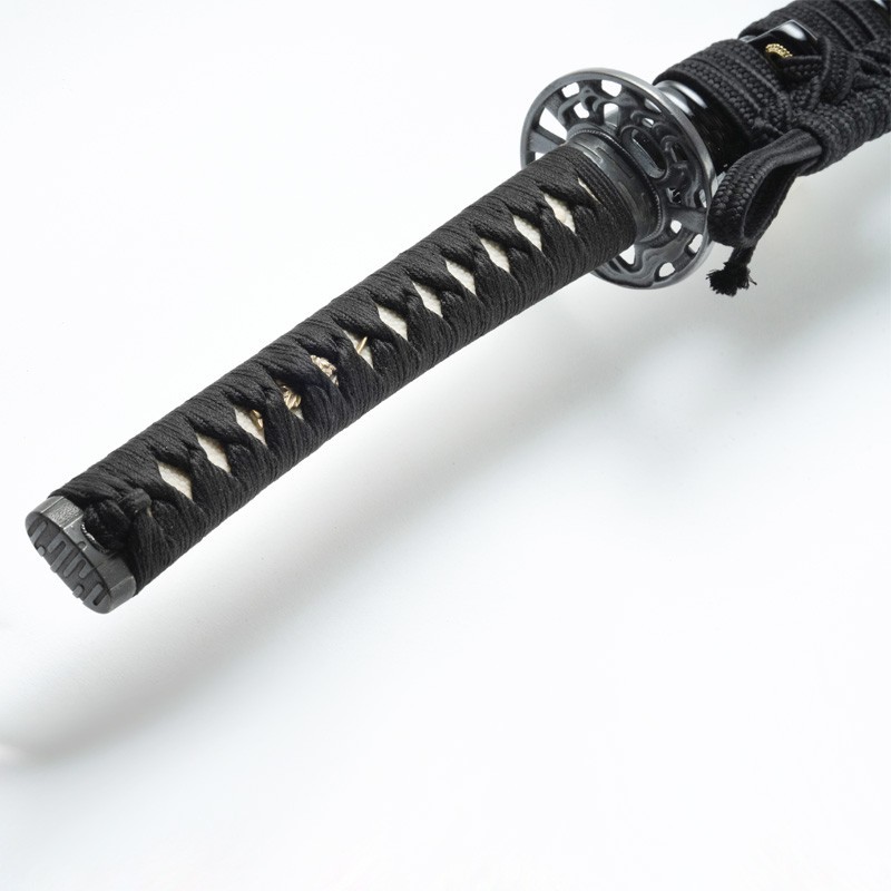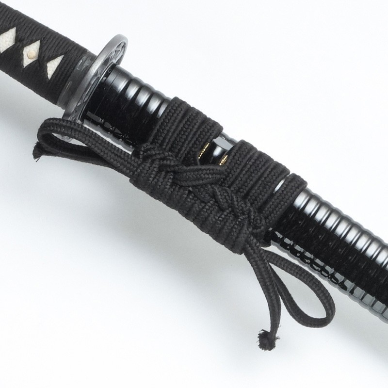 Tsuka Ito : Tressage Hineri Maki de la poignée en coton de couleur noire.