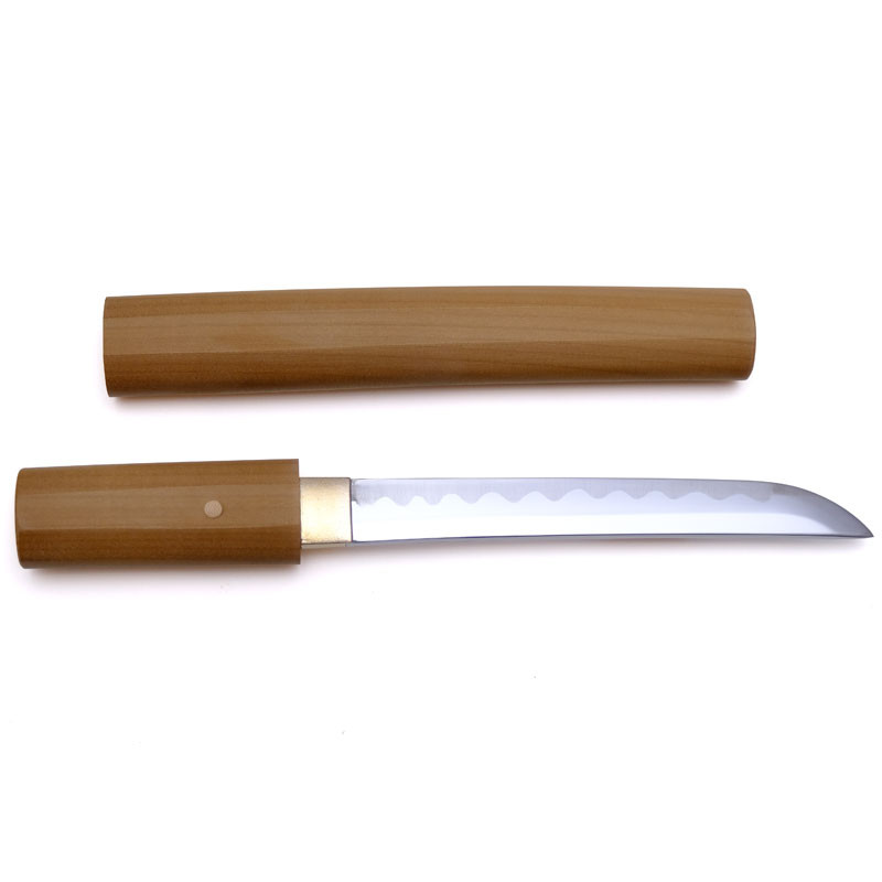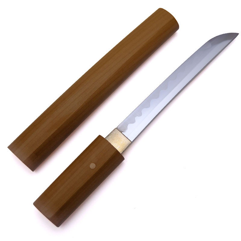 Couteau (Tanto/Aikuchi) classique en finition shirasaya (non verni), issu des ateliers Minosaka.