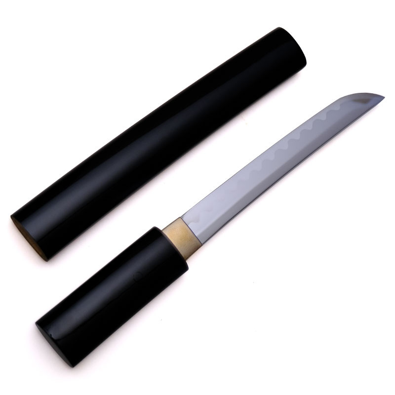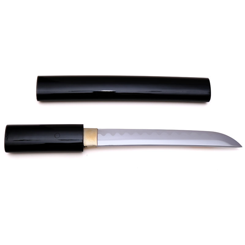 Couteau (Tanto/Aikuchi) classique en finition kurosaya (laqué noir brillant), issu des ateliers Minosaka.