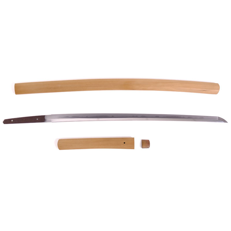 - Tsuka : Shirasaya en Magnolia, Poids 78g, Longueur 26.5cm - Habaki : Poids 26g, en cuivre, avec Neko Gaki obliques. |
