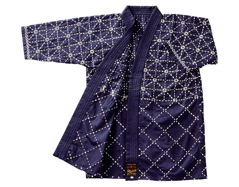 Ce type de veste en sashiko a commencé à être utilisé par les pratiquants de Bujutsu a partir de mi-Edo (XVIIIème siècle), avant de s'orienter vers des vestes grains de riz teintées en Indigo Aizome.