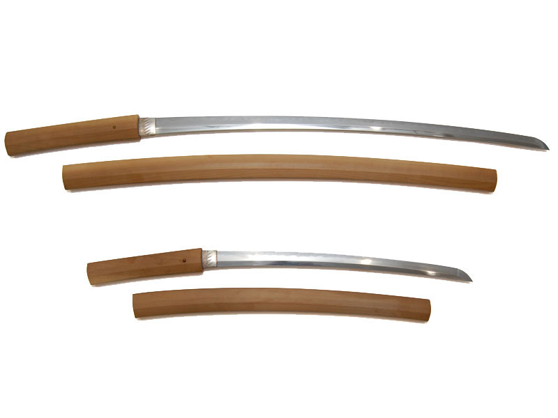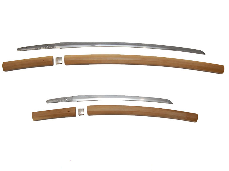 | Shirasaya Koshirae | - Montage Shirasaya en Magnolia Japonais - Tsuka : Poids 107g, Longueur 24.7cm - Saya : Poids 325g, Longueur 77.8cm - Habaki : Cuivre plaqué feuille d’argent, poids 41g, Motif Yujo (traits obliques) |