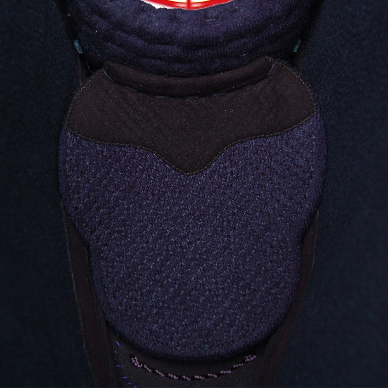 L'ensemble du Menbuton est en tissu 100% coton bleu indigo surpiqué fin en 3mm, avec coutures haut de gamme en diagonal sur les bavettes latérales (Naname-Zashi Mendare).