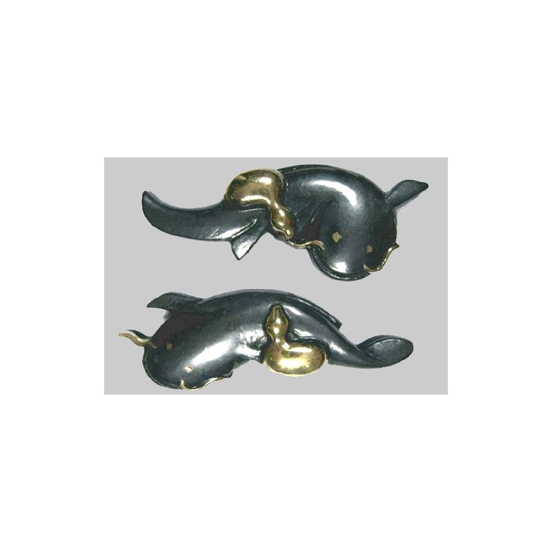 Menuki au motif de poisson-chat et d'une gourde en calebasse bilobée - Namazu Ni Hyotan (鯰に瓢箪).
