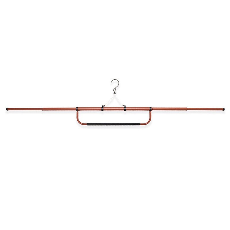 Ce cintre avec des branches extensibles est l'accessoire idéalpour faire sécher vos vestes rapidement en gardant leur forme en T, évitant ainsi que vos vestes ne soient froissées. C'est le support idéal pour un séchage traditionnel Japonais. En PVC, il est spécifiquement étudié pour avoir des vestes avec des tissus épais, telles que les vestes de Judo ou de Kendo. La barre inférieure vous permet de suspendre votre pantalon ou Hakama une fois secs, rassemblant ainsi vos affaires de pratique. Vendu à l'unité.