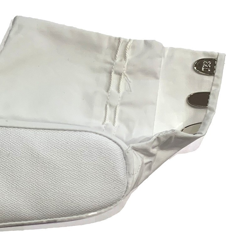 Leur système d'attache se fait de manière traditionnelle, par 4 agrafes métalliques, à l'arrière du pied. La partie supérieure enveloppant le pied est en coton satiné de couleur noire.